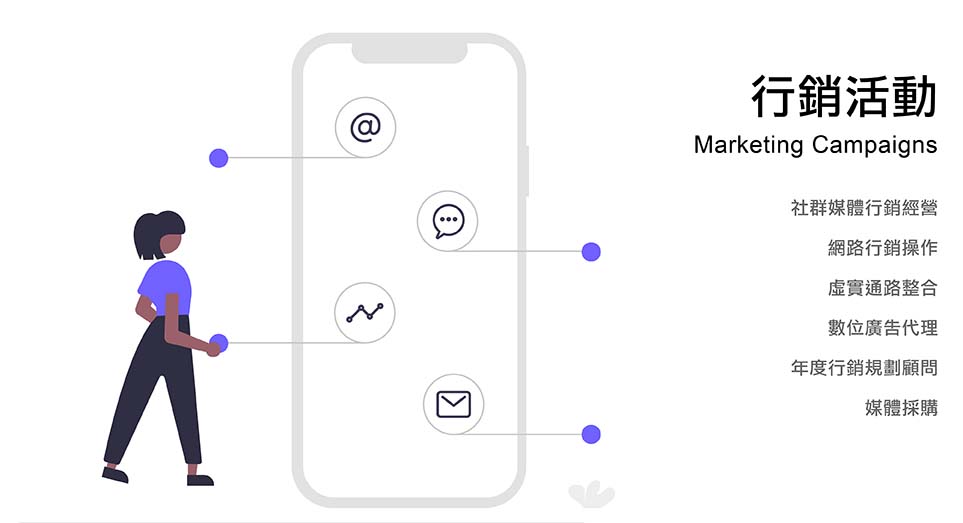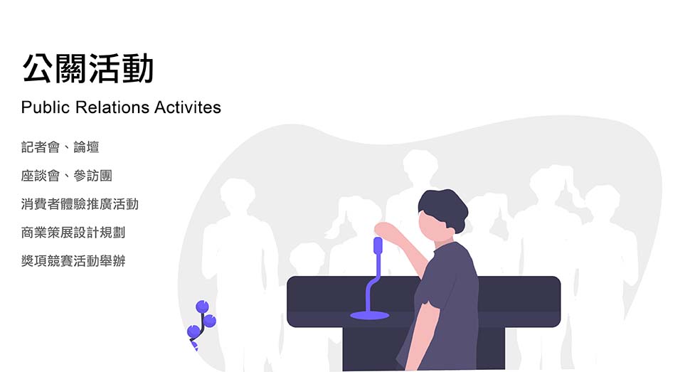 行銷,就是透過不同平臺的資源整合,發揚事務的美好特質。 五年多來,辰紘行銷本著自有技術及真誠的服務品質,協助國內政府單位與企業客戶的資訊化行銷化,使得辰紘行銷與客戶在此競爭激烈的環境下共同成長茁壯。 辰紘行銷有限公司共設有行政管理部、行銷企劃部、活動執行部、美術設計部、程式設計部使客戶享受最即時且完整的服務,發揮迅速的後勤支援及管理效率。